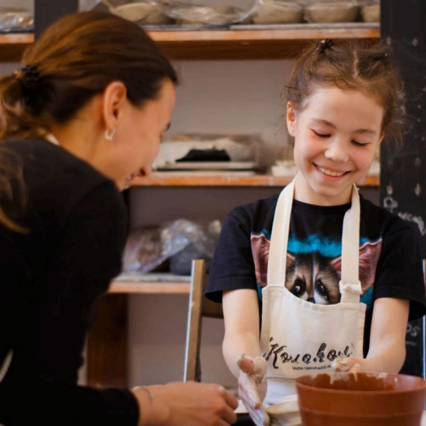 для детейНа мастер-классе вы сможете создать собственный шедевр и не переживайте, если вы ни разу ранее не держали в руках глину – большинство наших гостей знакомятся с гончарным кругом у нас уже на первом занятии создают отличные по качеству изделия.